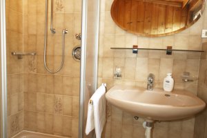 - Badezimmer mit Dusche, Bidet, Waschbecken und WC